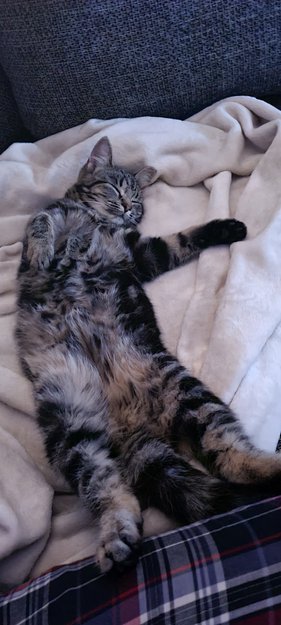 Nylig chippet og sterilisert, så er barbert på ene siden bak. Veldig kontaktskapende å kjelen