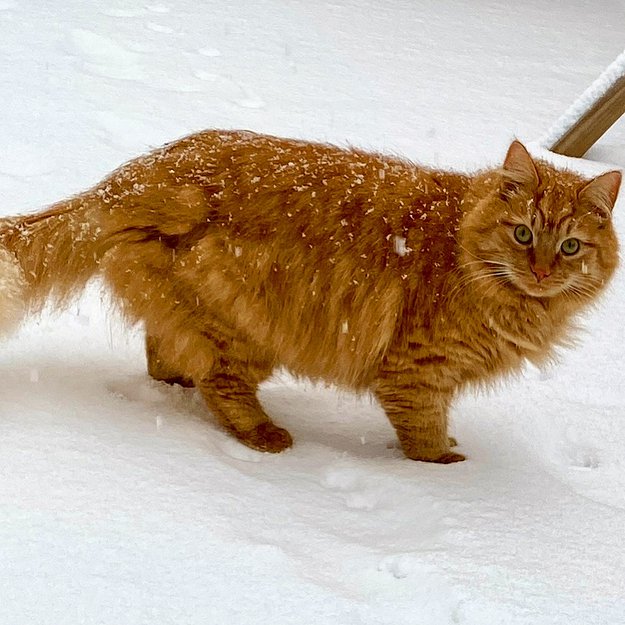 Han gikk ut som vanlig på morgen ca 5:30. pleier være tilbake før kl 7. Nå i kulda er han sjelden ute mer enn en time om gangen. Pleier å være i nabolaget.