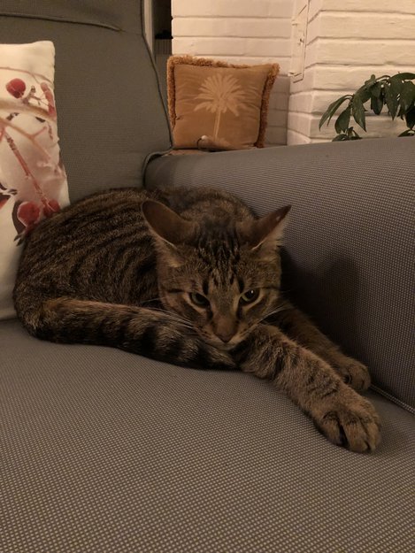 Katten sto utenfor terassedøren vår i flere tm, før vi til slutt slapp den inn. Den var veldig sulten.