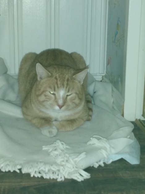 Rød stripete pus, han gikk i fangstfella ved ett forings punkt for villkatter som skal hentes inn. det er en veldig snill, pratsom pus. virker tam, men skeptisk.