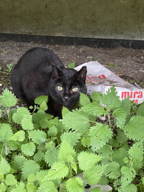 Svart ukastrert hannkatt dukket opp i sommer, litt av og på. Nå er den tilbake og sloss med våre katter.