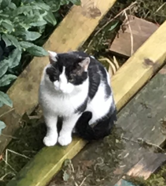 En litt herjet hankatt har slått seg til hos oss.