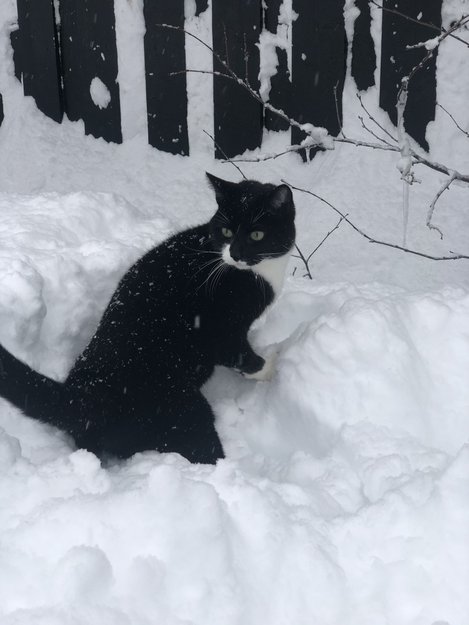 Katten ble borte mens vi var på hytta i vinterferien. Han er vant med å være der og trives godt i området. Han er ca 1,5 år og har aldri lagt ut på tur tidligere, men det var vel bare spørsmål om tid før det skjedde. Liker å følge etter folk på tur, litt kosete men liker ikke å bli holdt særlig lenge eller ligge på fanget.