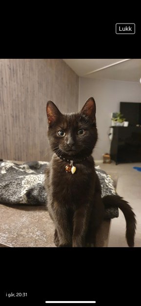Helsvart. Få kjennetegn. Har samme smykke som på bildet. Redd for mennesker