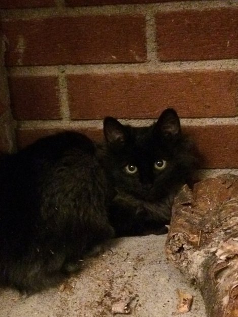 Ludvig har gått ut, noe han aldri har turt før. Har kun vært ute på trappa tidligere. Sky katt som liker å gjemme seg.