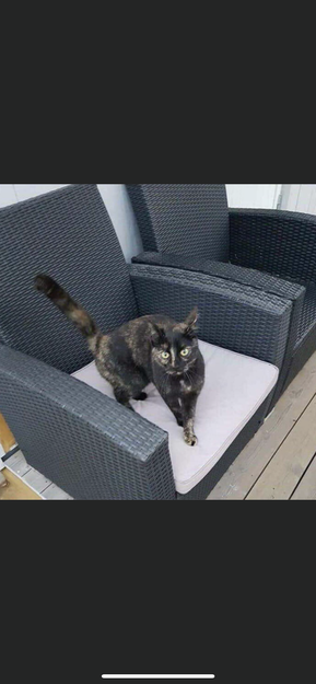 Bambi ble borte fra ulsvad på jaren. Hun er sterilisert og ganske tykk.