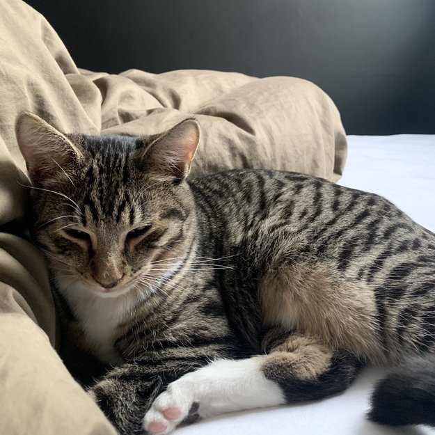 Grå/svart/hvit hannkatt var savnet i Drammen