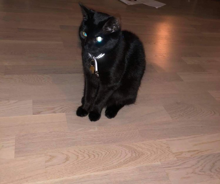 Ikke kommet hjem. Hun ble observert på vei mot Glemmen kirke mot sentrum. Et område hun ikke har vært før. Hun har halsbånd med navn og telefonnr men mulig det er slitt av da hun leker mye i trær og busker-