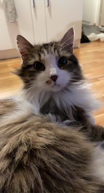 Pus gikk ut på kvelden tirsdag, bruker å være ute maks en times tid men kom ikke hjem igjen. Det ble etterhvert veldig kraftig vind, så er redd det er grunnen til at hun ikke er kommet hjem.
