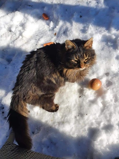 Denne katten er observert over en lengre periode, men var veldig sky i starten. Den er blitt mye tryggere og er nå veldig glad i kos.