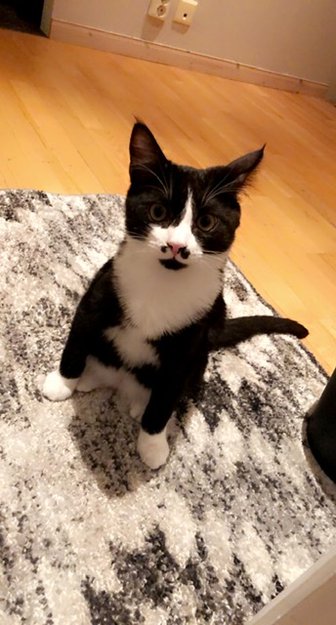 Katten kom seg ut når døra var åpen og ingen fulgte med. Han er en innekatt, og har aldri vært ute før. Bare en del ganger mens familien har vært tilstede.