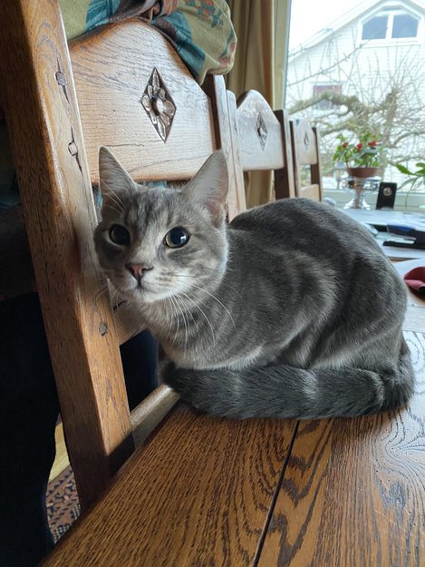 Ung hannkatt, veldig kjælen og sulten dukket opp hos oss i dag. Ingen halsbånd.