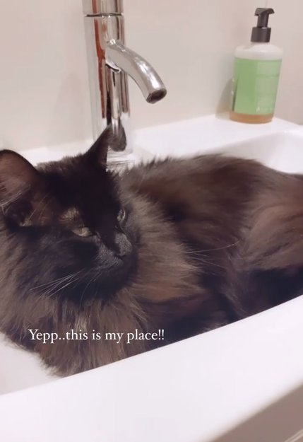 Hun har lang sort pels, veldig veldig pen - med en liten hvit flekk på brystet.
