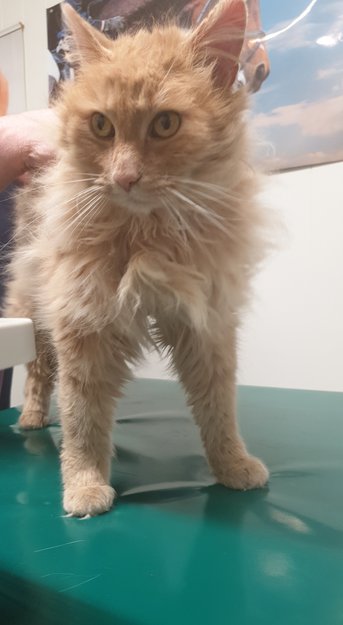 Dette er en rød katt med ekstremt god personlighet. Han har sår på ørene som kan komme av fôrallergi eller frostskader. Lang pels og veldig godtroende.