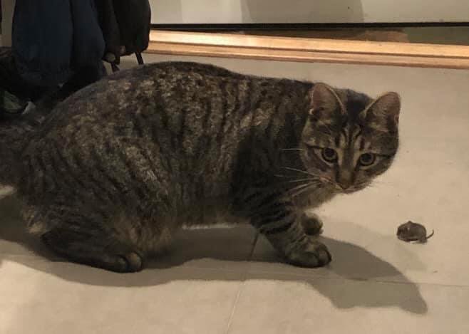 Myon er 1,5 år gammel. Går normalt inn og ut katteluke flere ganger om dagen for å spise, drikke og gå på do i kattekassen. Holder seg normalt rimelig tett på vårt hjem.