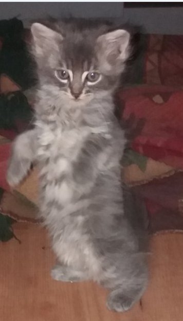 4 mnd gammel hannkatt. Grå spraglet, lang pels. Ikke kastrert eller Chippet (dette skulle selvsagt gjøres)