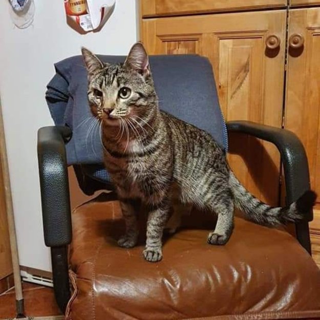 Katten kom til oss lørdag om ikke før, det var min mor som så den først. Søndag var den utenfor huset til mine foreldre med et øye som ikke ser så bra ut, han kom inn frivillig etter å ha fått litt mat. Fikk dryppt øye og følger med på han daglig siden han ofte ligger utenfor huset.