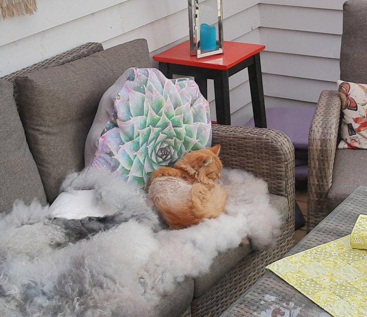 Denne karen ligger på terrassen vår nesten hele tiden de siste 4-5 dagene. Den er meget lett gjenkjennelig da den er nylig blitt barbert på kroppen.
