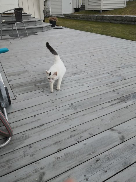 Kontaktsøkende kattunge (ca. 6 måneder?) Har oppholdt seg i nabolaget vårt i ca en uke (kanskje to) ser litt skitten ut.