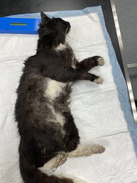 Påkjørt (død) katt funnet langs veien. Under brua som går over til Evjen i 80-sona.