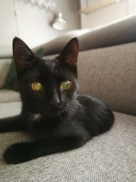 Kattunge, 4-5 mnd. Sort med litt hvitt foran.