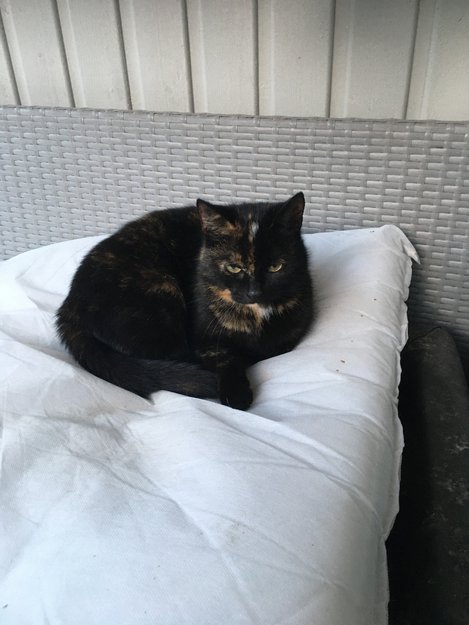 Hun er chippet og sterilisert. Vært savnet i en uke. Hun lyder navnet Karma.
