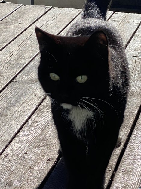 Er det noen som kjenner denne katten? Vi har ikke matet den, men den har holdt til i flere dager på terassen vår i Maiblomtunet og mjauer hver natt (helt til pusekatten vår går ut til den). Dersom den ikke snart blir etterlyst/funnet, må vi mate den da den trolig har vært lenge uten mat.